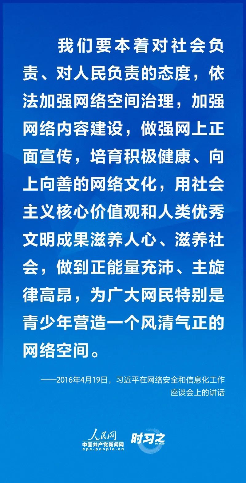 11月19日上午,首屆中國網(wǎng)絡(luò )文明大會(huì )在京開(kāi)幕,中共中央總書(shū)記、國家主席、中央軍委主席習近平致信祝賀。網(wǎng)絡(luò )文明是新形勢下社會(huì )文明的重要內容,是建設網(wǎng)絡(luò )強國的重要領(lǐng)域。習近平總書(shū)記高度重視網(wǎng)絡(luò )生態(tài)治理,強調要培育積極健康、向上向善的網(wǎng)絡(luò )文化。